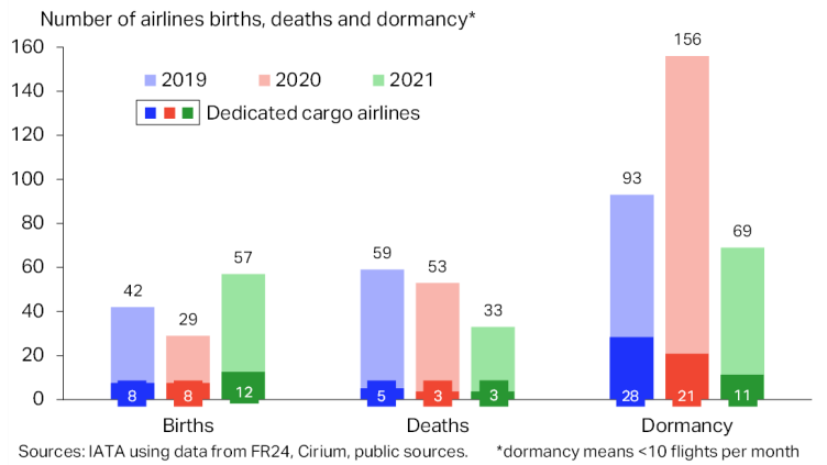 - The below figures suggest, that not only Cargo Airlines stand resilient & record less “deaths” during or post-pandemic, but even recorded “new Births”